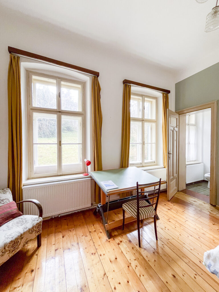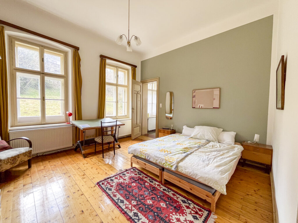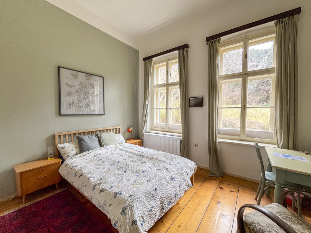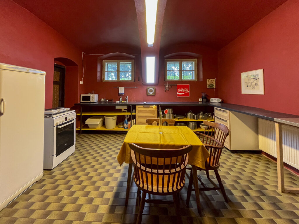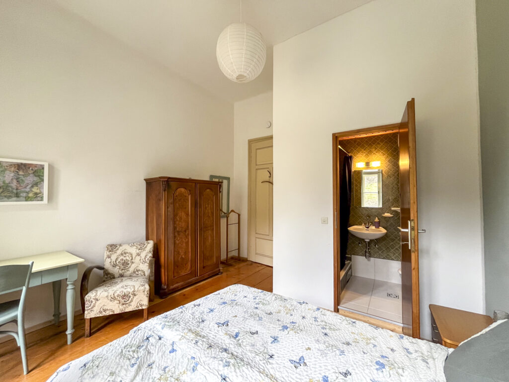 Planst du einen längeren Aufenthalt oder reist als Gruppe? Wenn du beide Zimmer gemeinsam buchst, kannst du die historische Gemeinschaftsküche im Keller (die legendäre „Bärenstube“) gegen einen Aufpreis von einmalig 40€ mitnutzen. So genießt du die Villa North wie dein eigenes privates Apartment.